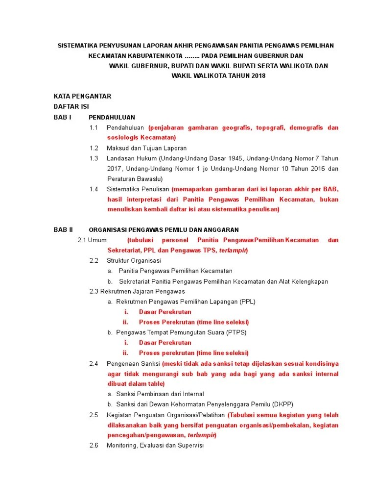 Pengawas pemilihan adalah bawaslu, bawaslu provinsi,. Semoga laporan akhir pengawasan ini bermanfaat bagi semua pihak yang membutuhkan referensi pengawasan pemilihan umum. Sebagai bahan pertanggungjawaban kpu kabupaten mandailing natal selaku penyelenggara pemilihan bupati dan wakil . Contoh laporan akhir pemilihan bupati. Panwascam babulu page 1 laporan akhir proses penjaringan pengawas pemilihan lapangan / panitia pengawas pemilu desa pada .