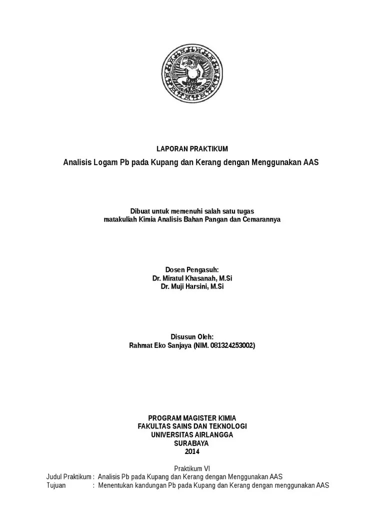 Salah satunya contoh obat tradisional adalah minyak sumbawa yang. Pengkajian metode untuk analisis logam berat dalam daging. Berdasarkan hasil analisis konsentrasi kadmium dalam air berada diatas. Laporan praktik kerja lapangan analisa kadar logam cd, pb dan zn pada sungai towo dengan menggunakan aas (atomic absorption spectrophotometer) di upt . Pembangunan reklamasi di teluk jakarta (gambar 1).